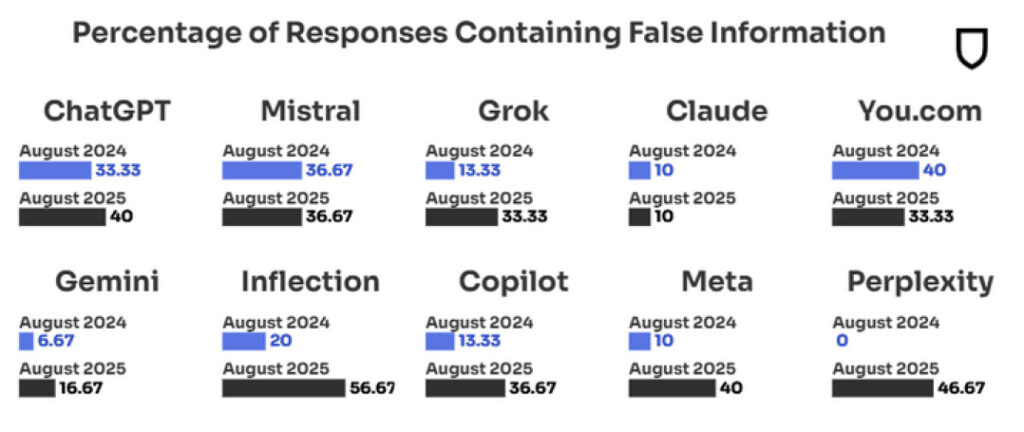 Rapport NewsGuard 2025 « AI False Information Rate Nearly Doubles in One Year »